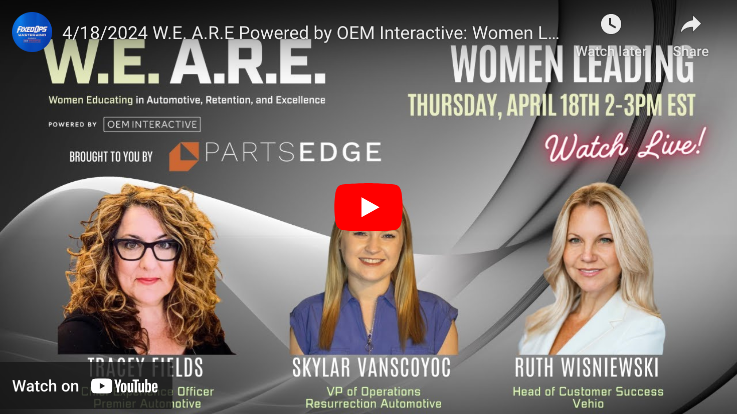 W.E. A.R.E: Women Educating in Automotive, Retention & Excellence 7/18/2024 Episode. Topic: Marketing Yourself To Benefit The Industry Host: Dave